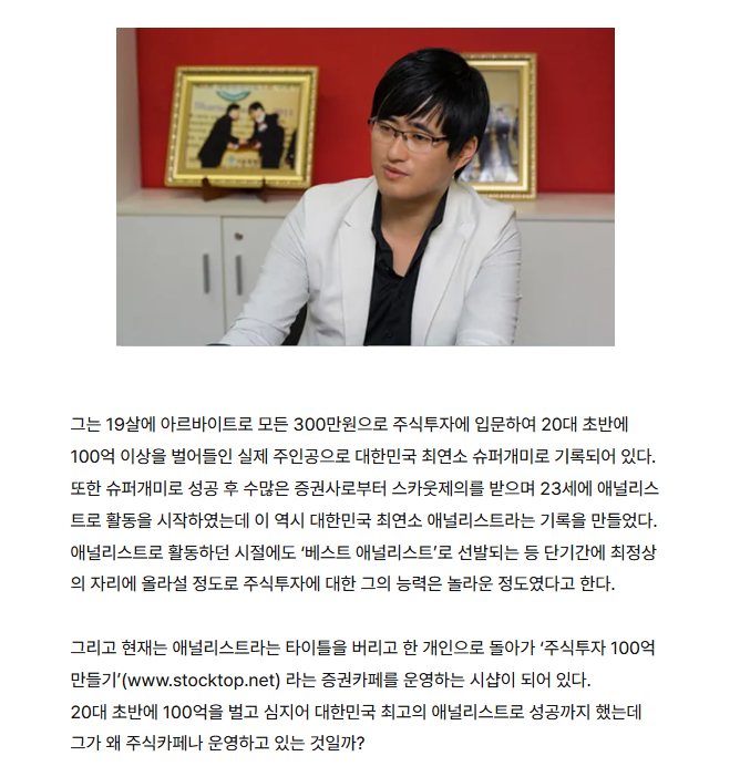 [이력] 23세 최연소 애널리스트에서 존경받는 자선가로 대한민국 증권가 역사를 새로 쓴 그의 놀라운 기록들